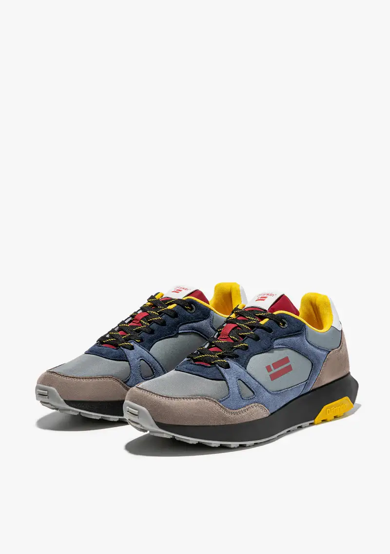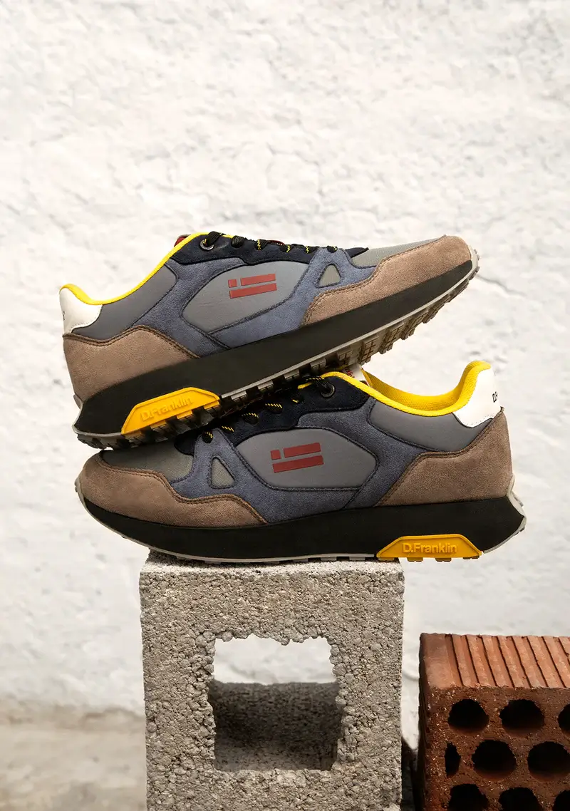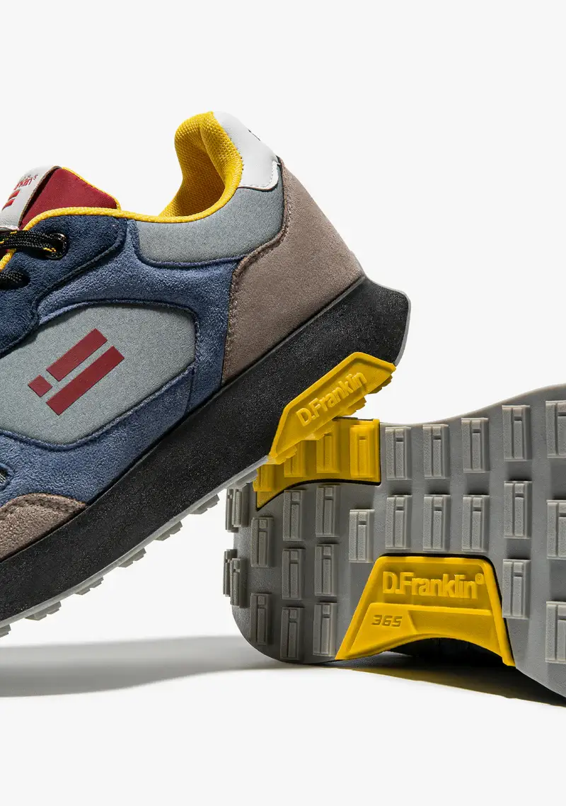 Sneakers σε μπλε αποχρώσεις D.Franklin με trail έμπνευση. Το σπορ στυλ που αιχμαλωτίζει την πόλη. Δημιουργήθηκε για να συνδεθεί με τη φυσική πλευρά των μεγάλων πρωτευουσών.